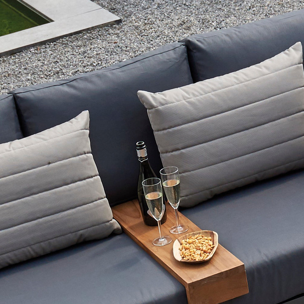 A beautiful warm blend of all natural, grade A, Indonesian certified robust teak wood on a strong lava aluminum frame.