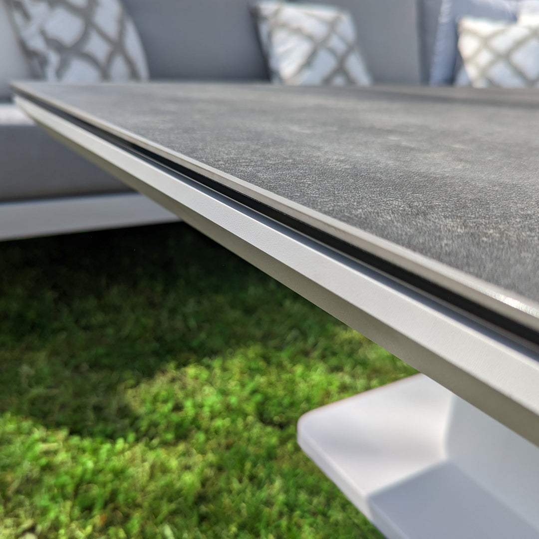 The Timber collection is one of our most versatile collections in our line of outdoor furniture. There are many different elements so you can combine to fit your family and lifestyle. The ceramic table is height-adjustable, and with one hand can quickly transition from being used as a lounge table to a fully functional dining table for outdoor dining.