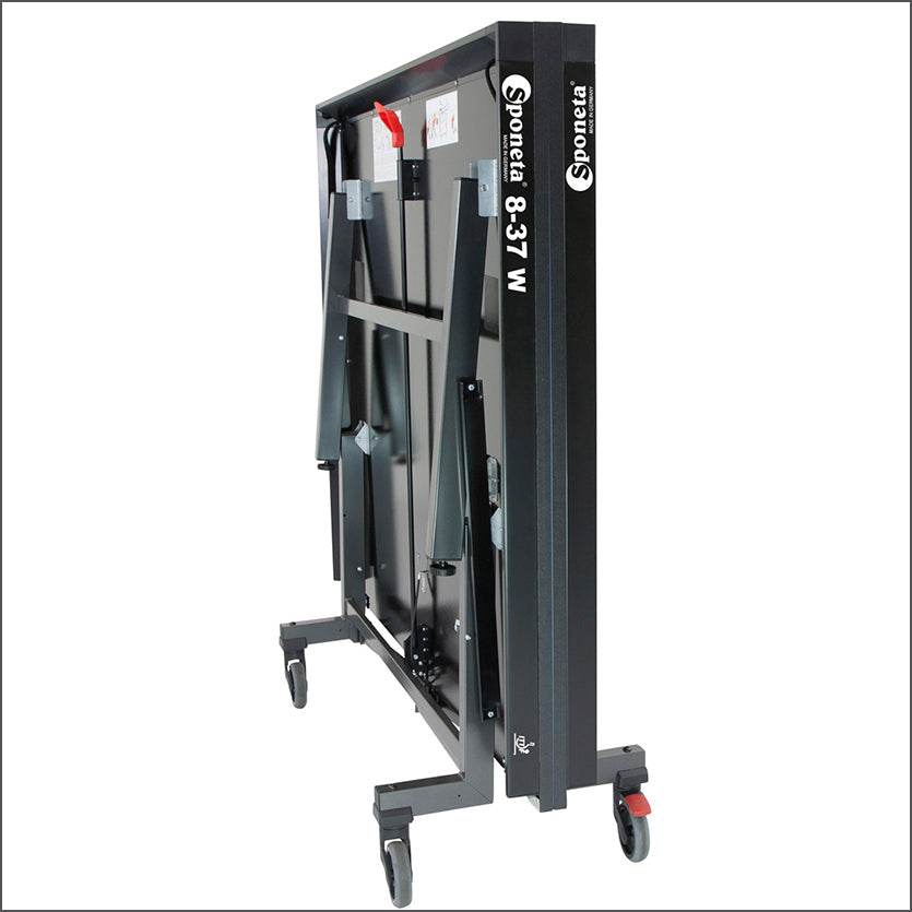 The heavy-duty Sponeta® Super Compact W is manufactured in Germany and comes fully assembled. This ITTF approved table tennis table boasts an all-inclusive design in having true wheelchair accessibility. Its scissor folding configuration and low center of gravity provide secure and compact storage. The massive steel frame profile and table legs are easy enough to negotiate when opening and closing the table via the assistance of air pistons located on the underside of the table tops.