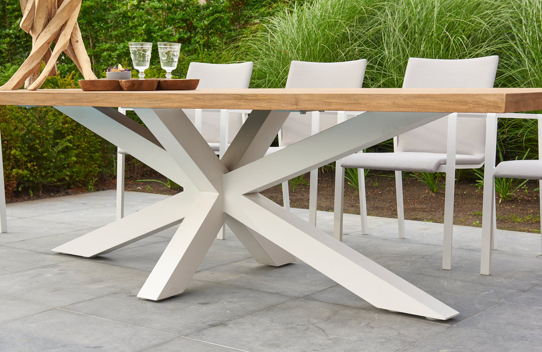 Just like the topical south pacific island it is named after; the Timor Teak Dining Table is breathtaking. The robust Indonesian solid teak top is over two inches thick and provides enough surface space to easily seat eight guests. The durable aluminum X-Frame table base provides one of the most stable platforms for any patio table on the market. With its clean lines and exquisite construction, the Timor table is a sight to behold.