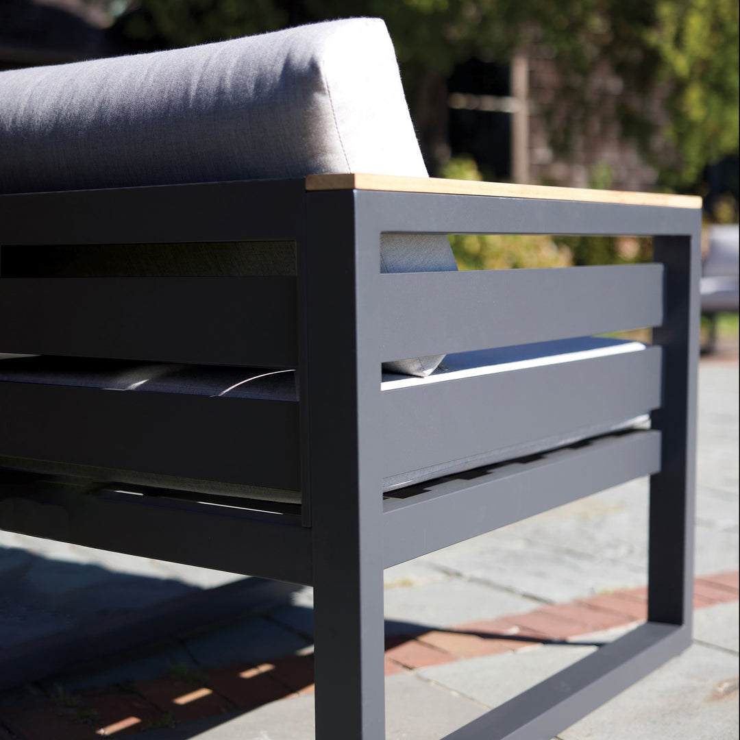 Aluminum is light weight durable, corrosion resistant and easy to maintain, making it an excellent choice for outdoor furniture. In addition to its practical properties, aluminum has a modern appearance and the material pairs well with others such as wood, textilene and rope, allowing you to easily create your own style in your outdoor space.